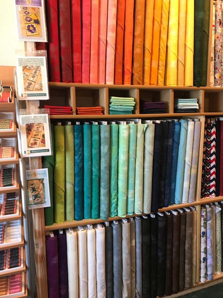 They have a delightful variety of batik fabrics that showcase the rich artistry and vibrant colors along with some custom fabrics featuring Lewis and Clark and the Montana mountains.