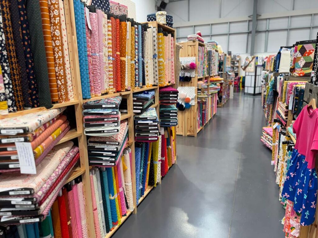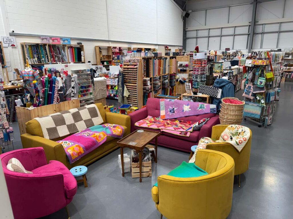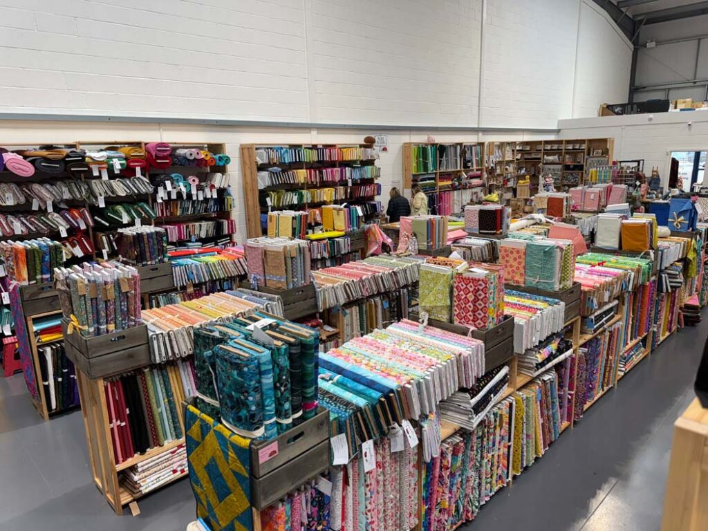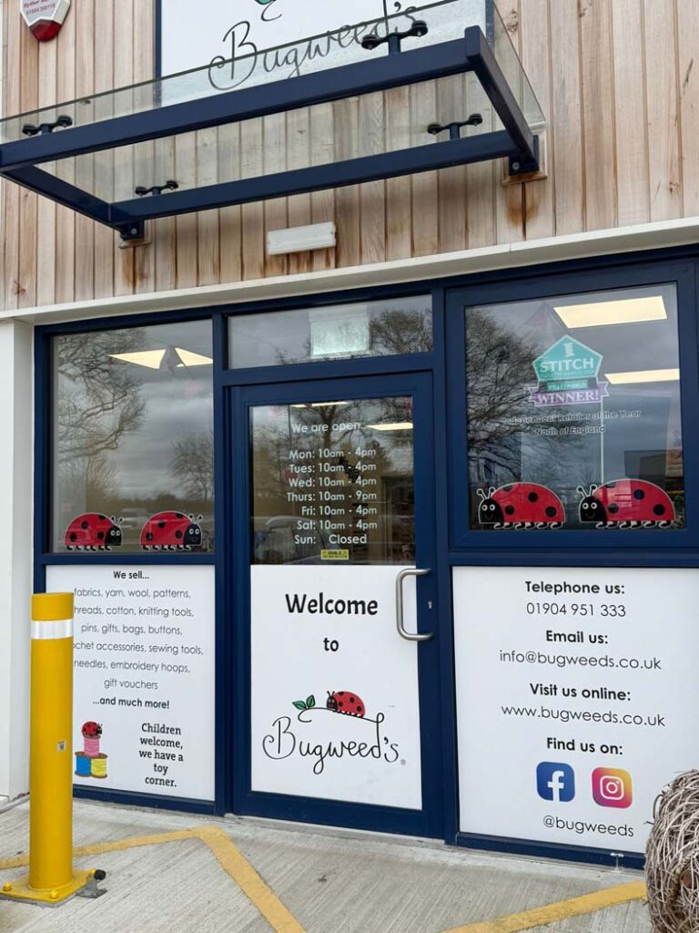 The current Bugweed’s shop is located in a new build unit on a busy retail park on the edge of York’s ring road. The space is light, spacious, and easy to explore, with dedicated areas for quilting fabrics, garment fabrics, yarn, sewing machines, and haberdashery.