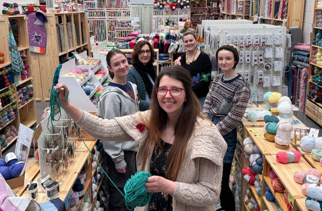 Helen, the General Manager, helps set the lively tone of the store, while Emma, the Assistant Manager, keeps everything running smoothly. Staff members Sophie, Sue, and Kate share deep knowledge across multiple crafts and regularly help customers solve project challenges.