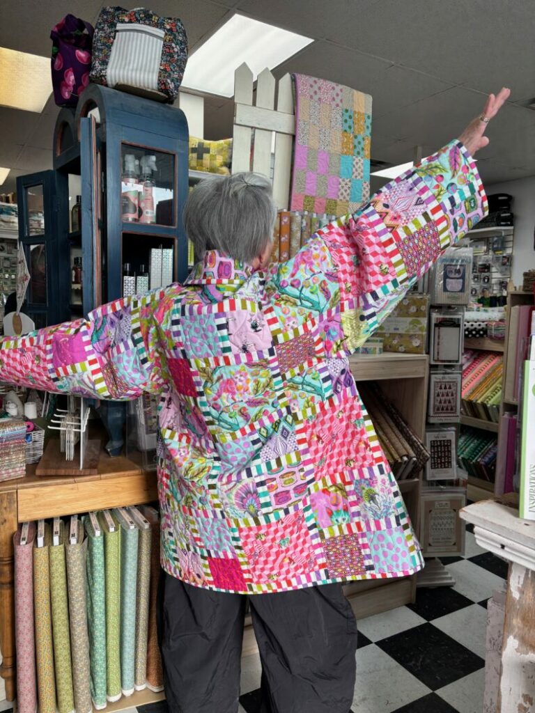 Popular class topics include hand appliqué, bag making, and garment sewing. The shop has even hosted three-day garment workshops with guest instructor Ron Collins.