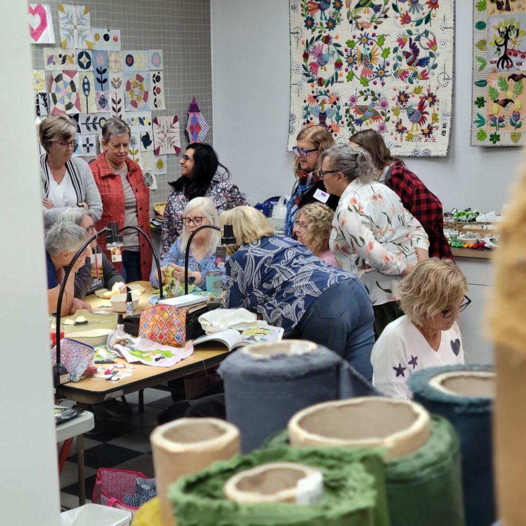 As customers’ interests evolved, so did the shop. Hand embroidery, embellishment, and wool appliqué were added to the mix, expanding the creative possibilities available to customers.